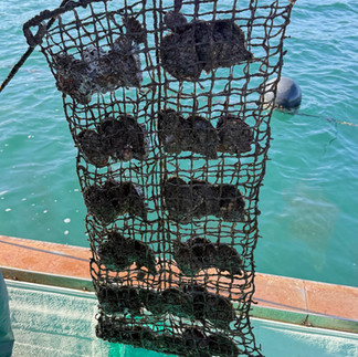 Healing Period – The oyster rests in protected baskets while it recovers.