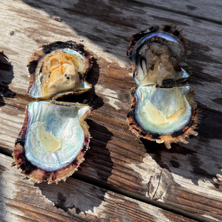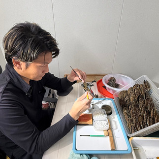 Nucleation – A skilled technician places a tiny mother-of-pearl bead and a piece of mantle tissue into the Akoya oyster.