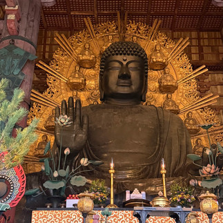 Before the fair began, we had a free day in which three of us decided to explore Nara Park, home to friendly deer and ancient temples— a peaceful contrast to the intensity of the previous days. We took the train from Kobe to Nara, switching trains and platforms and feeling very proud of ourselves as we successfully navigated the effecting and spotlessly clean Japanese rail system. If you are ever fortunate enough to visit Japan, I highly recommend a trip to Nara - it’s a joy to wonder among the deers, who roam freely around the village. It’s also home to several important temples. I loved visiting Todaiji Temple where you will be amazed by the Great Buddha Hall, which houses Daibutsu, a colossal statue that, at 15 meters (49 feet) in height, is the world's largest gilded bronze Buddha. It is housed in an all-wood building, the Daibutsu-den, 48 meters (157 feet) in height, the largest wooden building in the world.